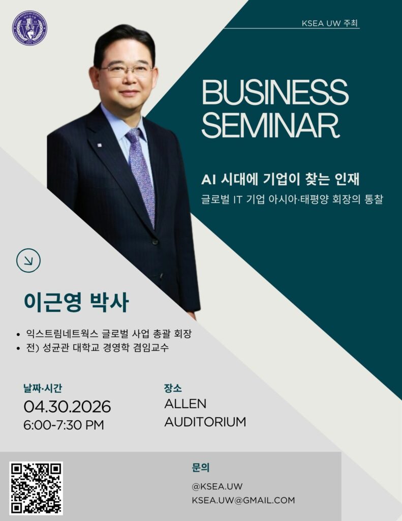 University of WashingtonDear KSEA Seattle chapter members, KSEA (Korean-American Science and Engineering Association) Seattle Chapter is pleased to announce an in-person academic and career talk, 'Making the Invisible Visible', on May 26th at 6 PM (PDT). Professor Young-Kee Kim, a distinguished physicist, will share her life journey in search of the interaction among the smallest particles in the universe …